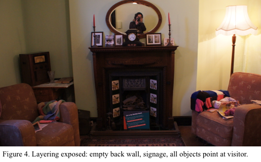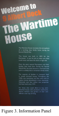 The Piermaster’s house is perfect example of Susan Vogel’s concept. The site itself, as the main information pane states (Fig. 3), was probably not a house during world war II, and while the objects are part of the NML’s collection, they originate from many places. What we have is what David Philips calls Laminations: layers of meanings fabricated to give the impression of reality (Phillips, 1997, p 204). Our first layer is the house, the main framing device, then comes the use of period objects that solidifies us within time, then the actual room arrangement where we get the feeling of an actual house, afterwards we have the museological decisions such as labelling systems, barriers and pathfinding. All of these things together create an artificial setting that appears to be natural or real. Upon this, the visitor is supposed to create new knowledge, through the combination of what is learned from the minimal labelling, the objects, their arrangement, visual clues such as the RAP flyers and any other knowledge previously had of the period.
